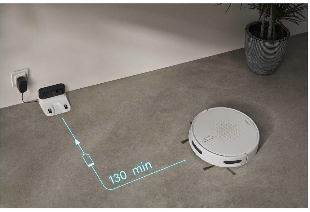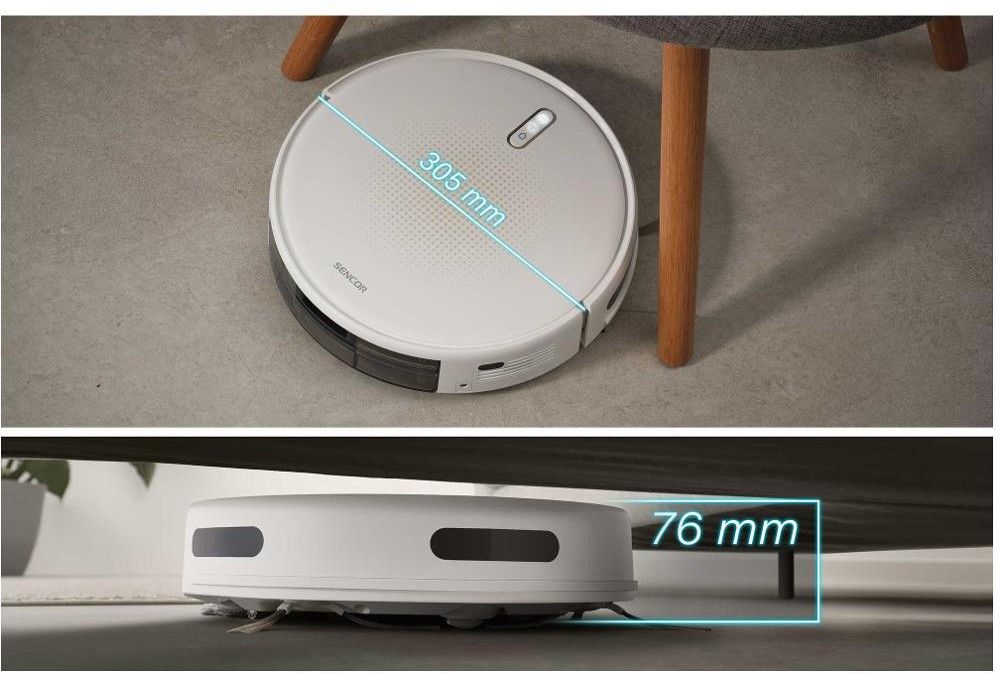 Hledáte pomocníka, který se před nepořádkem nezastaví? Inteligentní robotický vysavač Sencor SRV 4150WH s výkonným digitálním motorem se sací sílou 3000 Pa si poradí s koberci i všemi typy tvrdých podlah, umí zároveň vysávat i mopovat. Díky gyroskopické navigaci chytře volí optimální trasu úklidu a po dokončení práce se sám vrátí do nabíjecí stanice. Li-Ion baterie s kapacitou 2 600 mAh zajistí na jedno nabití až 130 minut provozu. Nízký profil 7,6 cm robotovi umožní dostat se i pod nábytek, zatímco inteligentní senzory zabrání nárazům a pádům. Ovládání je snadné skrz dálkový ovladač nebo mobilní aplikaci Sencor HOME. Úklid tak můžete řídit odkudkoli.