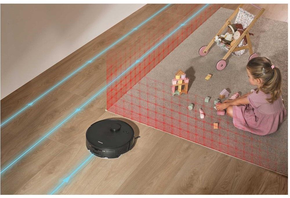 Orientaci v prostoru má na starost laserová navigace Lidar. Při prvním průjezdu si vysavač zmapuje domácnost. Následně se pohybuje dle plánu. Náhled a úpravu mapy umožňuje aplikace Sencor Home. Spolehnout se můžete na efektivní úklid s úsporou energie. Vysavač má průměr 31 cm a snadno se pohybuje mezi překážkami, jako jsou nohy od stolu či židle.