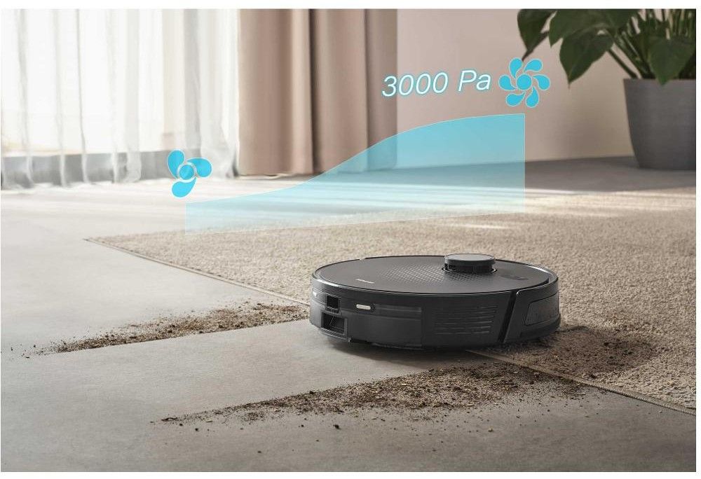 Robot si díky výkonnému motoru se sací sílou 3 000 Pa poradí s vysátím libovolného typu podlah. Při úklidu koberce s vyšším vlasem automaticky zvýší sací výkon, čímž zachytí nečistoty i z hustého vlákna. O 130minutovou výdrž na jedno nabití se postará prémiová Li-Ion baterie s kapacitou 2 600 mAh.
