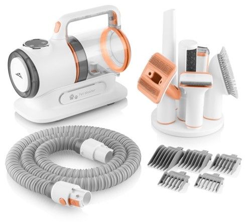 Ruční vysavač 6v1 pro kompletní péči o srst domácích mazlíčků, stříhá/vyčesává/kartáčuje a odsává srsti psů, koček a dalších zvířat v jednom kroku.
