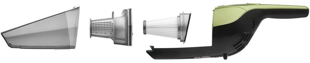 Nejsou potřeba žádné sáčky. Vysypání vnitřní nádoby na prach, která má kapacitu 0,5 l, je velmi snadné. Nádobu pomocí praktického patentu jednoduše vyjmete z vysavače a vysypete do koše.