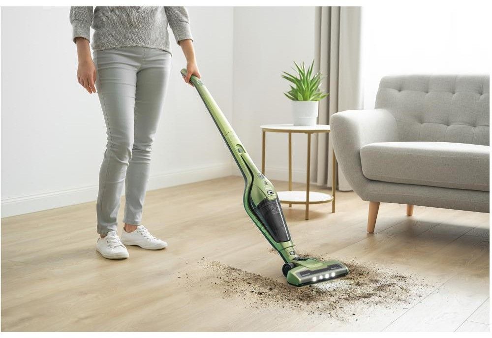 Cyklónový filtrační HEPA systém zachycuje vířící částice prachu a udržuje stálý výkon sání. Pomáhá i při úklidu povrchů s velkou koncentrací prachu, jako jsou místa za nábytkem nebo husté koberce. LED osvětlení hubice vám pak pomůže najít každé zbylé smítko.