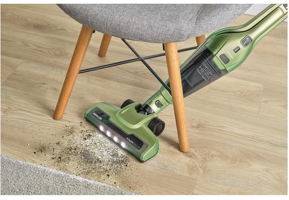 Tyčový vysavač Sencor SVC 0600GG 3 v 1 vysaje nečistoty z podlah, jako jsou parkety, dlaždičky, plovoucí podlahy nebo PVC, a dokonce i z hustých koberců. Rotační kartáč s nezávislým motorem zaručuje vynikající výsledky na jakémkoliv typu podlahy a zlepšuje efektivitu sání na kobercích s dlouhým vlasem.