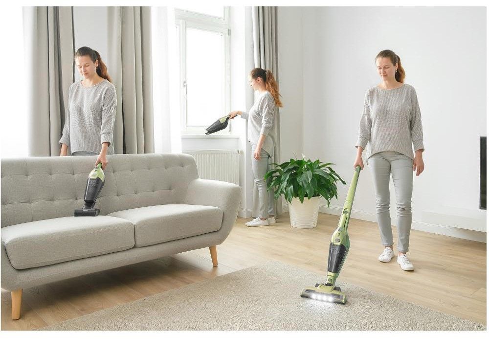 Tyčový, bezsáčkový vysavač 3v1 s Li-Ion 2000 mAh akumulátorem, který na jedno nabití pracuje až 45 minut.
