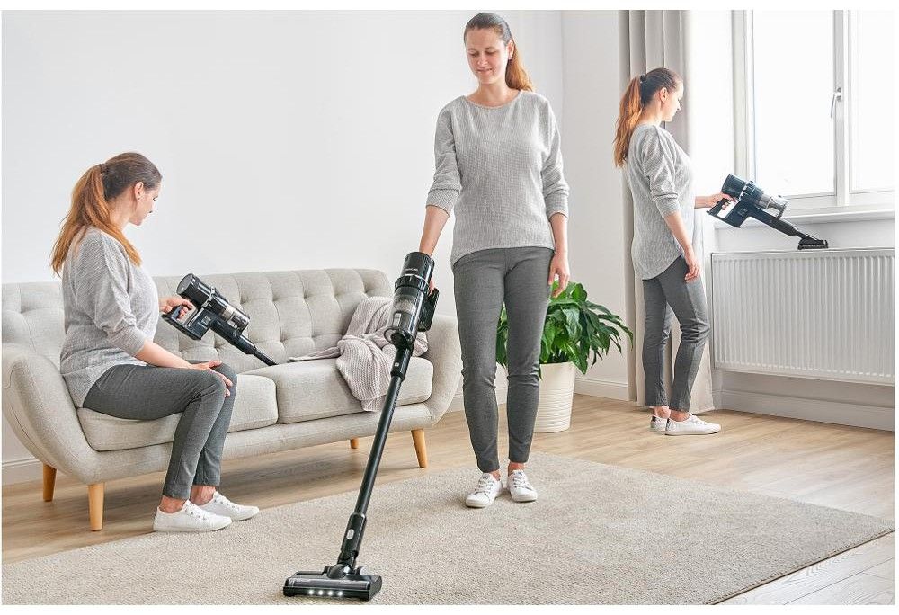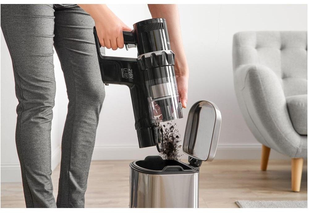 Zařízení je opatřeno výkonným 250W inovativním digitálním motorem. Spolehnout se však můžete i na nízkou hmotnost a jednoduché ovládání vysavače. Při úklidu jistě oceníte snadno odnímatelnou ruční jednotku. Díky Li-Ion baterii 21,6 V/2 200 mAh je zajištěn na jedno nabití až 45minutový úklid. Dobití trvá následně 4,5 hodiny.