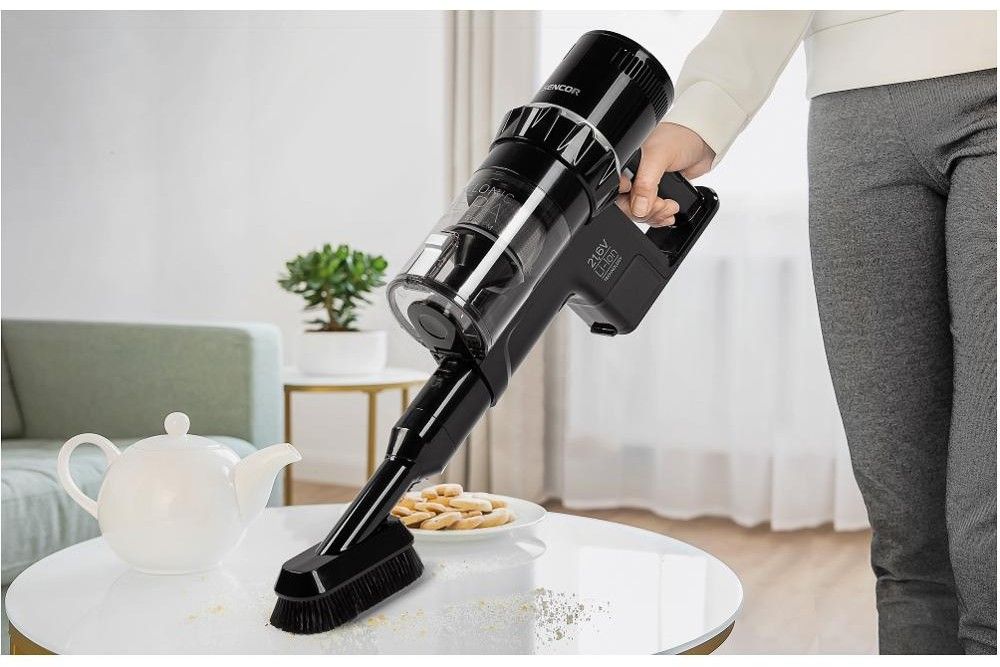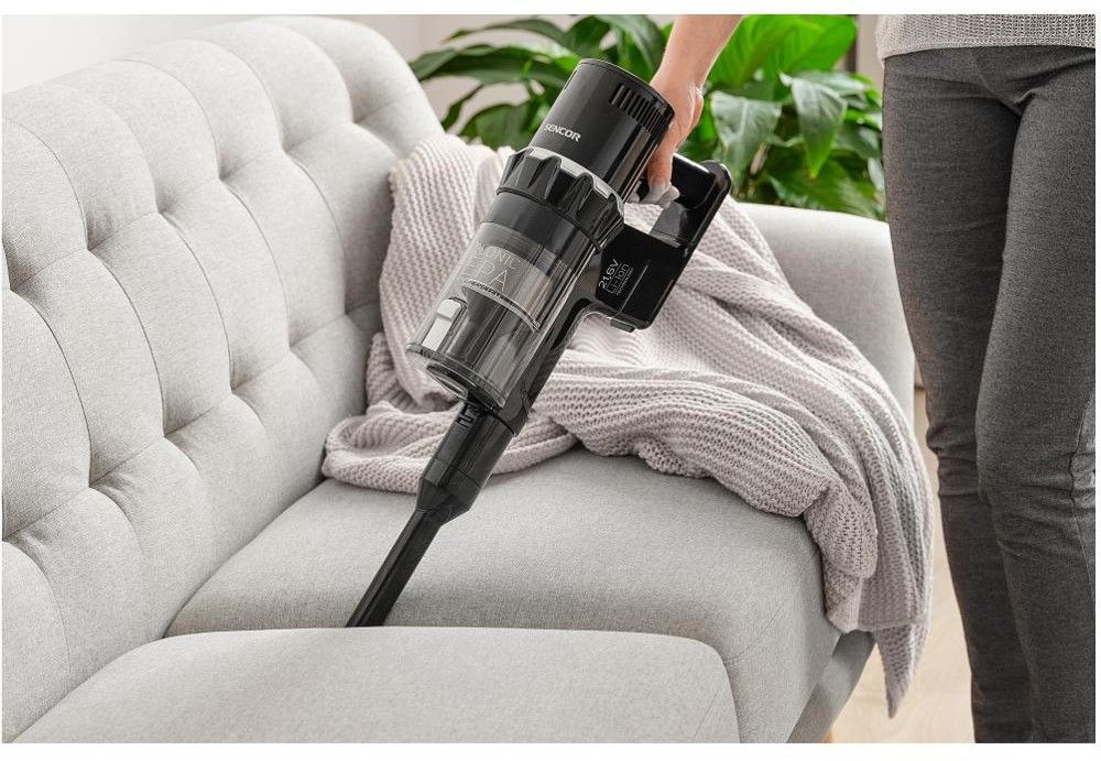 Výkonný 250W akumulátorový tyčový vysavač Sencor SVC 7523BK typu 2 v 1 obsahuje silný digitální motor zajišťující snadný úklid všech typů povrchů. Zachování čistoty i v hůře dostupných místech podporuje lehké provedení v kombinaci s jednoduchým ovládáním. Nejjemnější prach i v temnějších koutech spolehlivě odhalí praktická hubice s LED osvětlením. S odnímatelnou ruční jednotkou můžete zařízení používat pro odstranění prachu z nábytku nebo nečistot v autě. Účinný cyklonový filtrační HEPA systém zajišťuje dokonalé výsledky.