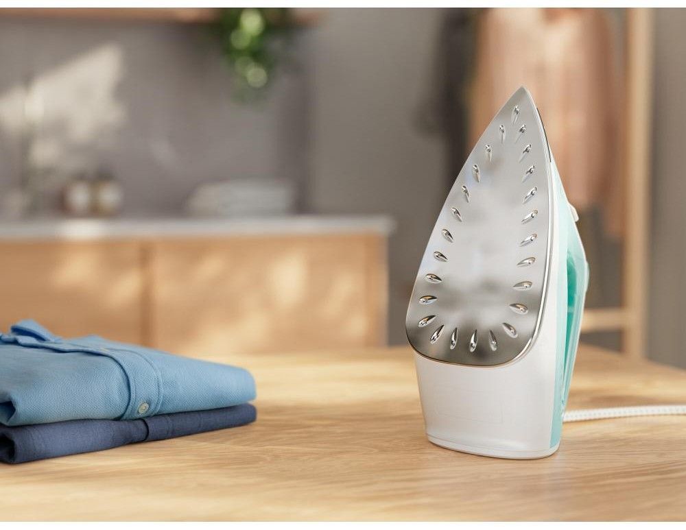 Žehlicí plocha z nerezové oceli je odolná, nabízí ideální rozvod tepla a snadno klouže po oblečení.