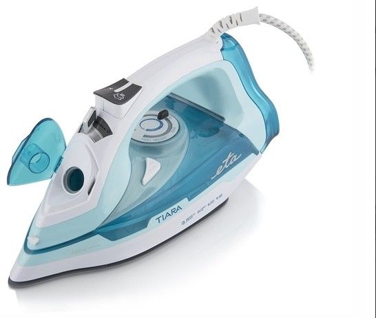 ETA Tiara II 0269 90000 je opatřena ergonomicky tvarovanou rukojetí a dlouhým napájecím kabelem (2 m). Napájecí kabel je navíc osazeným výkyvným kloubem, který chrání kabel před poškozením. Kabel je možné po ukončení žehlení rychle navinout na zadní část a poté bezpečně odložit žehličku na stojan do odkládací polohy.