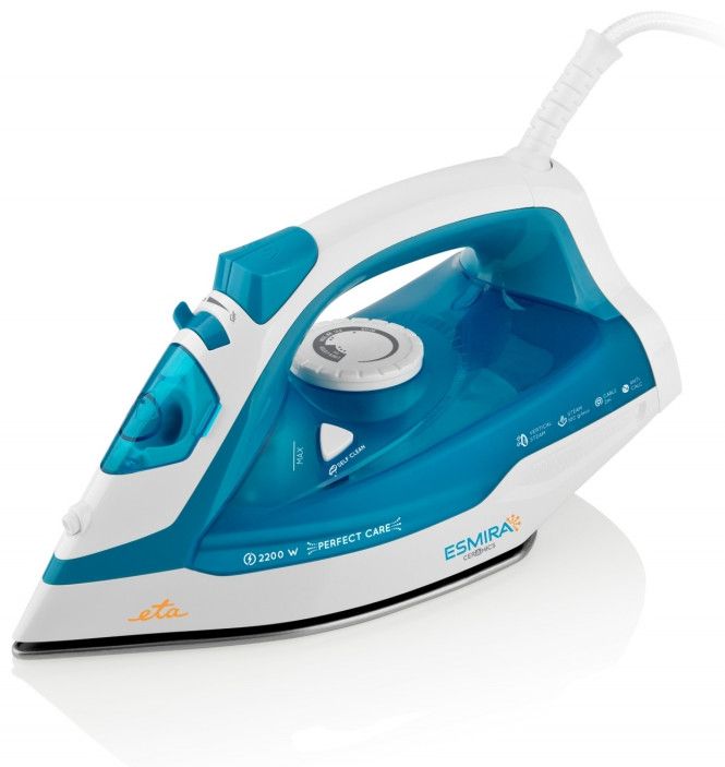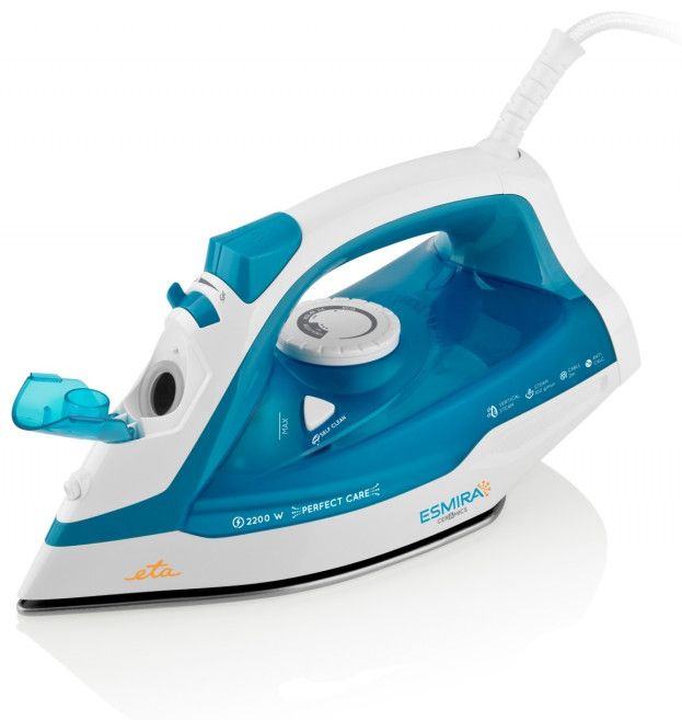 Napařovací žehlička ETA Esmira v elegantním modro-bílém provedení vám bude praktickým pomocníkem při žehlení velkého množství prádla. S příkonem 2 200 W se žehlička na svoji provozní teplotu zahřeje velmi rychle a bez zdlouhavého čekání. Nechybí jí ani speciální žehlicí plocha Eloxium, která je nepřilnavá, krásně po prádle klouže a je odolná proti poškrábání. Navíc zaručuje optimální rozložení teploty a zefektivňuje žehlení.
