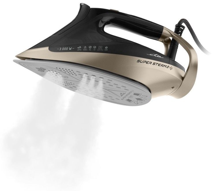 ETA SuperSteam II kombinuje napařovací žehličku a parní stanici v jednom zařízení. S příkonem 3 000 W se rychle zahřeje a udrží teplotu stabilní i při dlouhém a náročném žehlení. Díky stabilnímu výstupu páry až 60 g/min a parnímu šoku až 200 g/min snadno zkrotí i silně zmačkané tkaniny nebo vrstvy prádla.