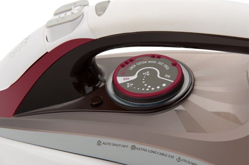 Disponuje několika funkcemi, které zkvalitňují proces žehlení a zároveň prodlužují životnost žehličky. Tento model je vybaven také funkcí AUTO-SHUT OFF, která kontroluje polohu žehličky. V případě, že je žehlička odstavena příliš dlouhou dobu, nebo se náhodou převrhne, funkce žehličku automaticky vypne a ochrání tak vaši domácnost před požárem.