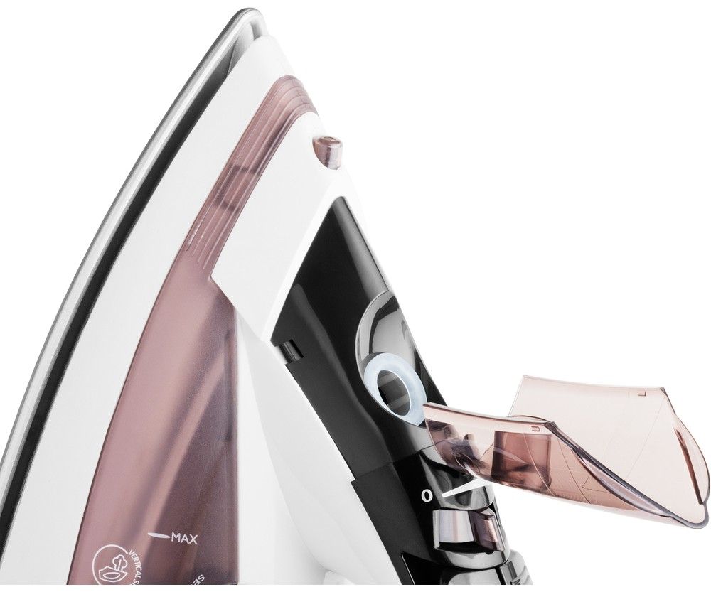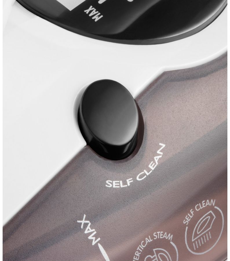 Napařovací žehlička má rozprašovač vody, vertikální napařování, silný parní ráz, technologii proti usazování vodního kamene, funkci automatického vypínání a samočištění