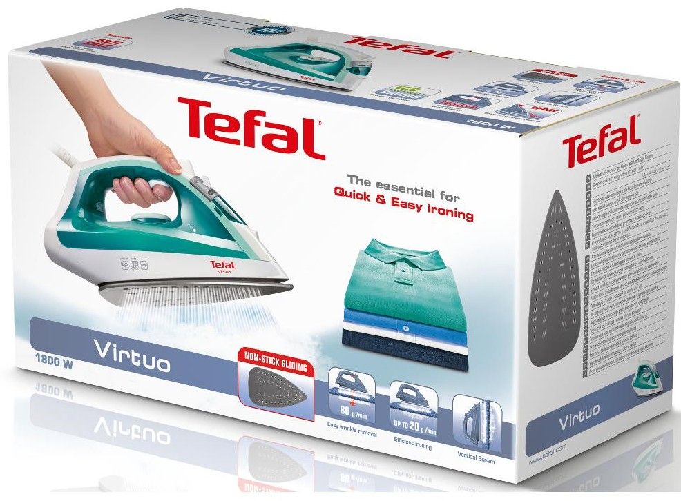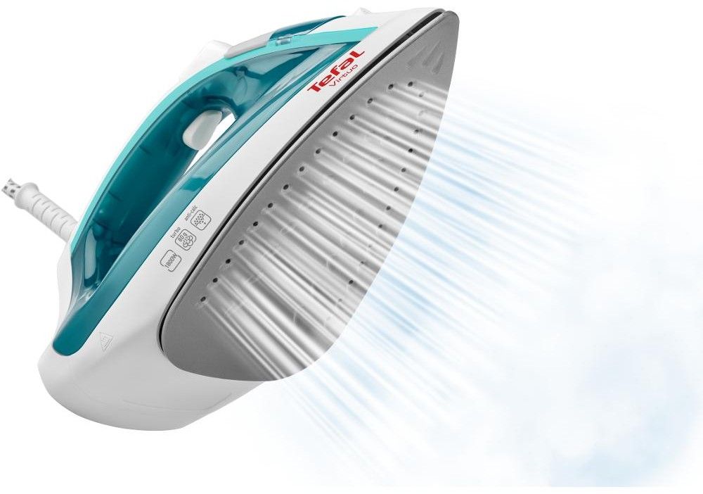 Napařovací žehlička s nepřilnavou žehlící plochou a horizontálním a vertikálním napařováním.