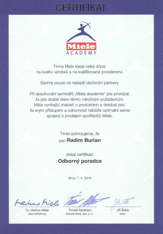 K naplnění motta společnosti Miele „Vždy lepší” přispívá i tradiční vzdělávací projekt Miele Akademie, jehož cílem je vyškolit kvalifikované prodejce výrobků Miele.