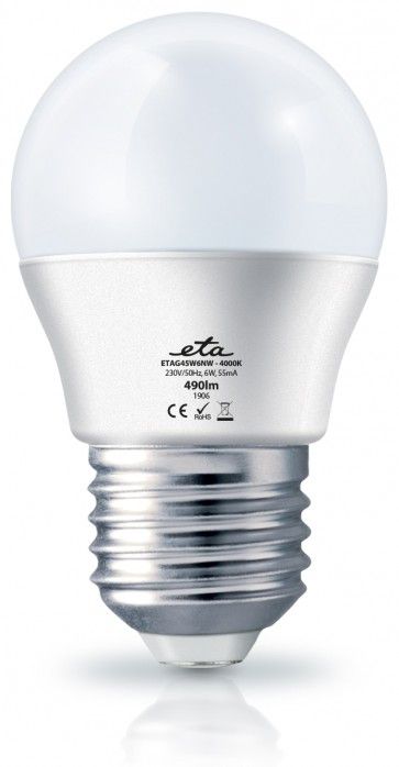 - Příkon: 6 W (svítivost jako klasická 40 W žárovka)