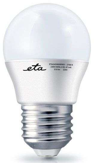 - Příkon: 6 W (svítivost jako klasická 42 W žárovka)