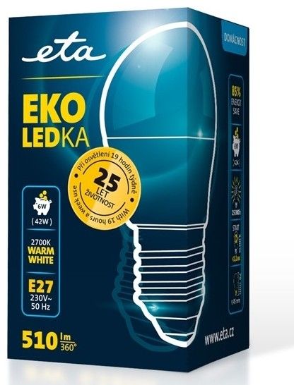 Oproti klasickým žárovkám, dokáže ETA LED žárovka, díky své nízké spotřebě, ušetřit až 90% spotřeby energie. V praxi vám tak uspoří až několik set korun za rok. Investice do LED technologie se tedy za pár měsíců vrátí zpět.
