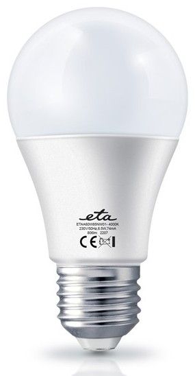 EKO LEDka (ETAA60W85NW01) je mléčná 8,5W LED žárovka s paticí E27 a vstupním napětí 230V. Světelný tok žárovky je 806 Lm s úhlem svítivosti 360°. Její světlo řadíme mezi neutrální bílé (o síle 4000K) a je alternativou klasické 60W žárovky. Rozměry žárovky jsou 60x110 mm.