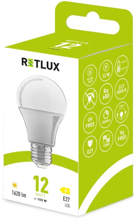 12W LED žárovka, E27, 1620 Lm, životnost 25000 hod.