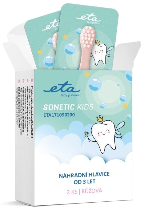 Originální náhradní hlavice ETA jsou určeny pro dětský sonický kartáček ETA171090000 a jsou vhodné pro děti od 3 do 6 let. Osazeny jsou jemnými štětinkami DuPont, které šetrně pečují citlivé dětské zuby a dásně, zároveň však spolehlivě odstraňují zubní plak. Díky tomu jsou ideální pro každodenní péči i upevňování správných hygienických návyků, které vedou ke zdravému a zářivému úsměvu. V balení naleznete 2 kusy v růžové barvě.