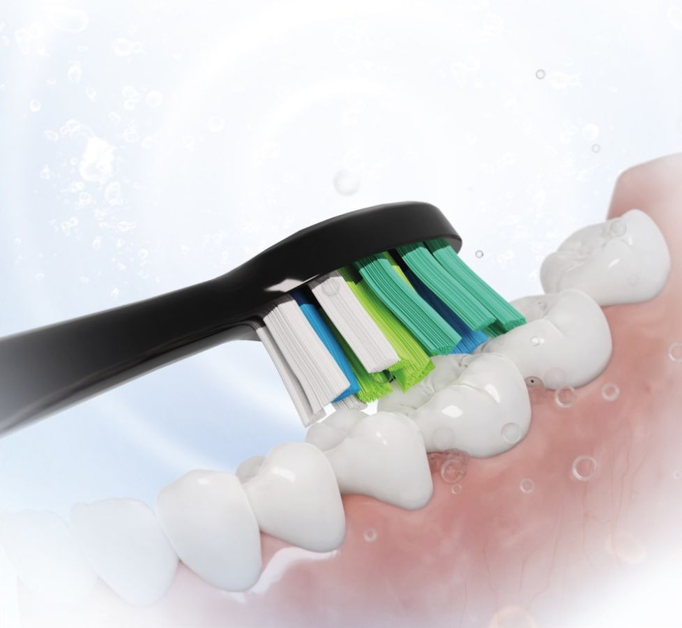 Všestranné čistění, pro každodenní použití. Nová generace tvaru W pro simultánní čištění dvou zubů. Navíc díky speciálnímu umístění vláken do svazků a jejich tvaru je čištění zubů mnohem efektivnější než s běžnou hlavicí.