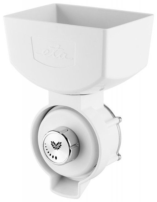 Mlýnek ETA 0028 96020 je kompatibilním příslušenstvím k robotům Gratus (ETA 0028) a Gustus (ETA 0128) . S jeho pomocí si tak rychle umelete kvalitní domácí mouku z různých druhů obilovin a luštěnin. Hravě zvládne pšenici, žito, oves, ječmen, pohanku ale také čočku, hrách, cizrnu, fazole, rýži i jáhly. Naloupat si můžete dokonce i sóju. To ocení především osoby trpící Celiakií. Bezlepkovou mouku si tak můžete kdykoliv namlít sami.