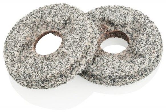 - 2 velké mlecí kameny z hrubozrnného korundovo keramického materiálu o průměru 85 mm