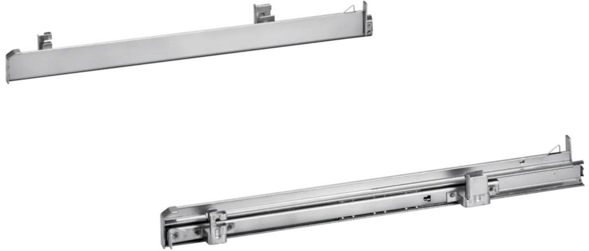 Výsuvné kolejnice Bosch HEZ538000 clip rail jsou vhodné pro umístění do trouby, kde zajistí snadnou manipulaci s rozpálenými plechy či pekáči. Jejich instalace do trouby je snadná. Jednoduše nacvaknete na libovolnou úroveň roštu a můžete je podle potřeby přesunovat. Tento výsuv je částečný, což znamená, že vysouvá plech jen na 75%.