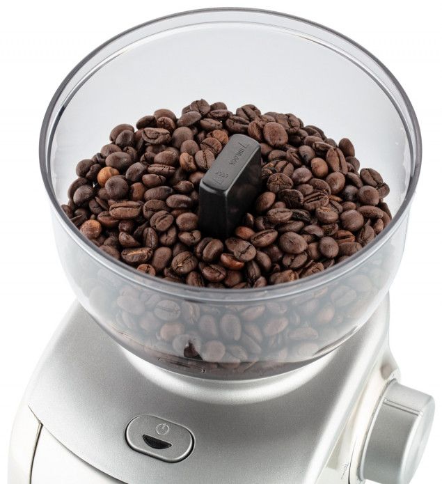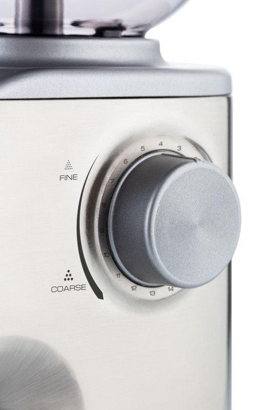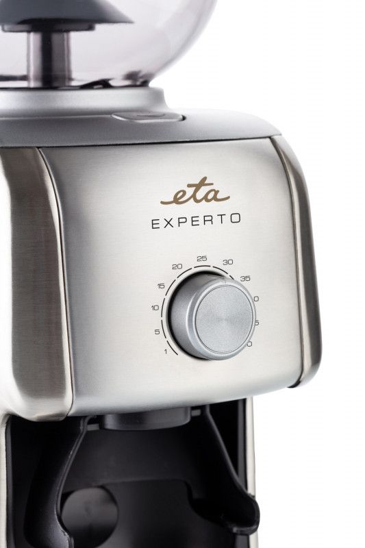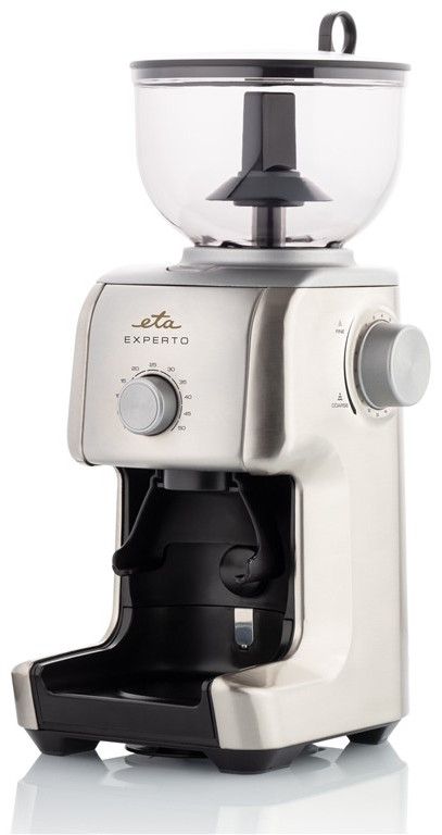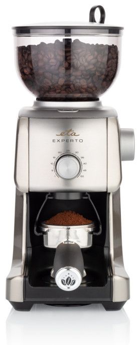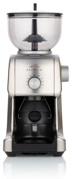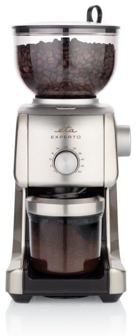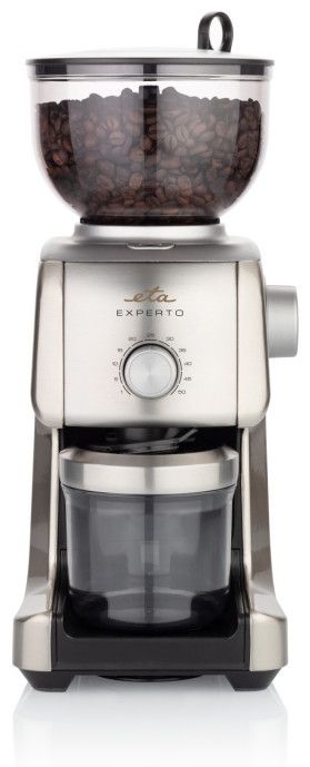 Celokovový kávomlýnek Experto se 16 stupni jemnosti mletí s příkonem 130 W. Obsah násypky 400 g, 2 mlecí kameny a odnímatelný zásobník na mletou kávu o kapacitě 240 g.