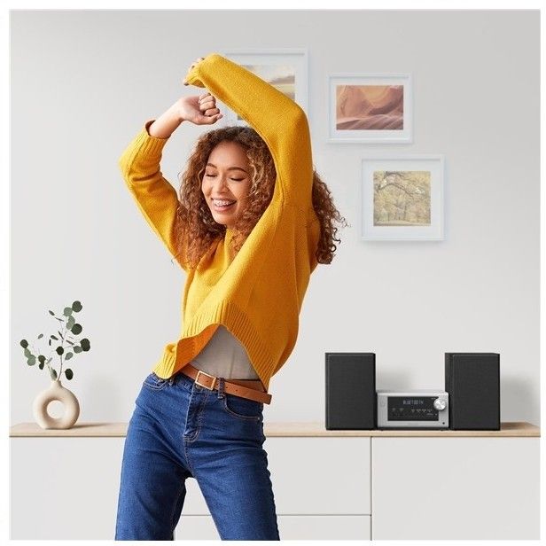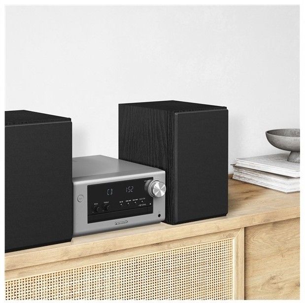 Kompaktní mikro systém s CD přehrávačem, USB portem, Bluetooth, FM tunerem, výkonem 80 W a dálkovým ovládáním.