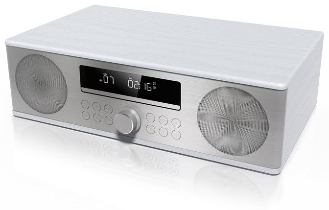 DAB+ audio systém s BT má bezdrátové streamování zvuku prostřednictvím rozhraní Bluetooth®, přehrávač CD pro formáty disků: CD/CR-R/CD-RW/MP3, USB pro přehrávání a nabíjení, velký LCD displej, dřevěnou skříňku s reproduktory přispívající k vyšší kvalitě zvuku, čelní panel z nerezavějící oceli a plně funkční dálkový ovladač.