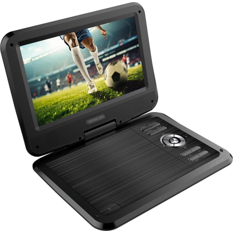 Přenosný DVD přehrávač má otočný LCD displej s úhlopříčkou 10", USB (max. 32 GB) a podporu titulků.