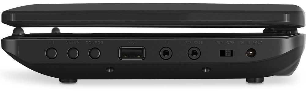 Přenosný DVD přehrávač s úhlopříčkou 9", rozlišením 800x480 pixelů s DVD mechanikou, podporou DivX a USB.