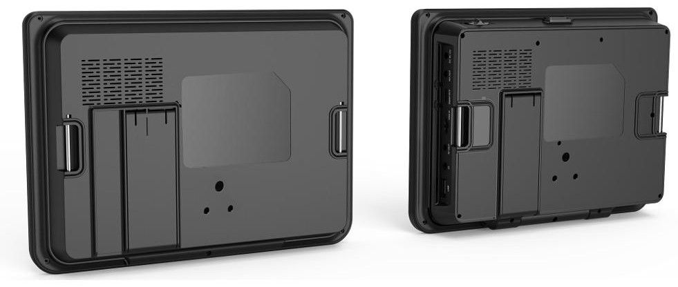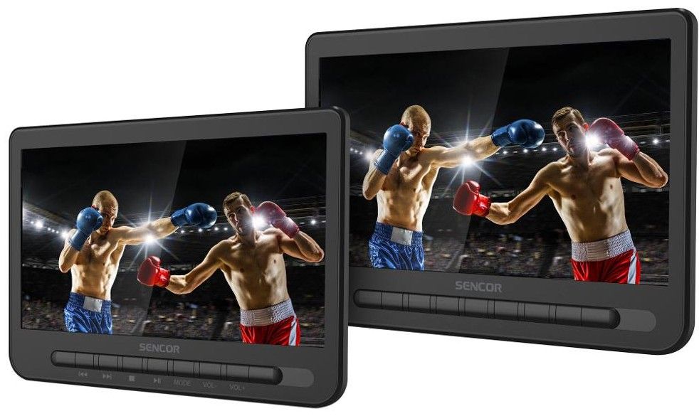 Přenosný DVD přehrávač s 2x 10" LCD displejem, slotem na kartu SD, USB a rodičovkým zámkem.