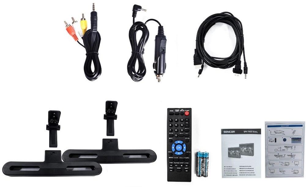 Příslušenství: nabíječka do auta, dálkový ovladač, baterie, návod k obsluze, držák na opěrku hlavy