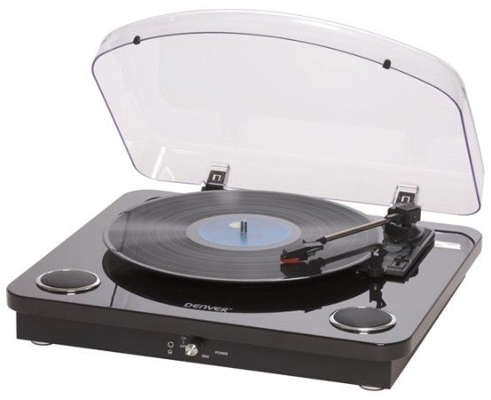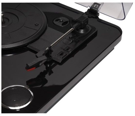 Řemínkový gramofon má rychlost 33/45/78 rpm, integrovaný stereo zesilovač, USB výstup pro připojení k PC, RCA linkový výstup, výkon 5 W a funkci Autostop.