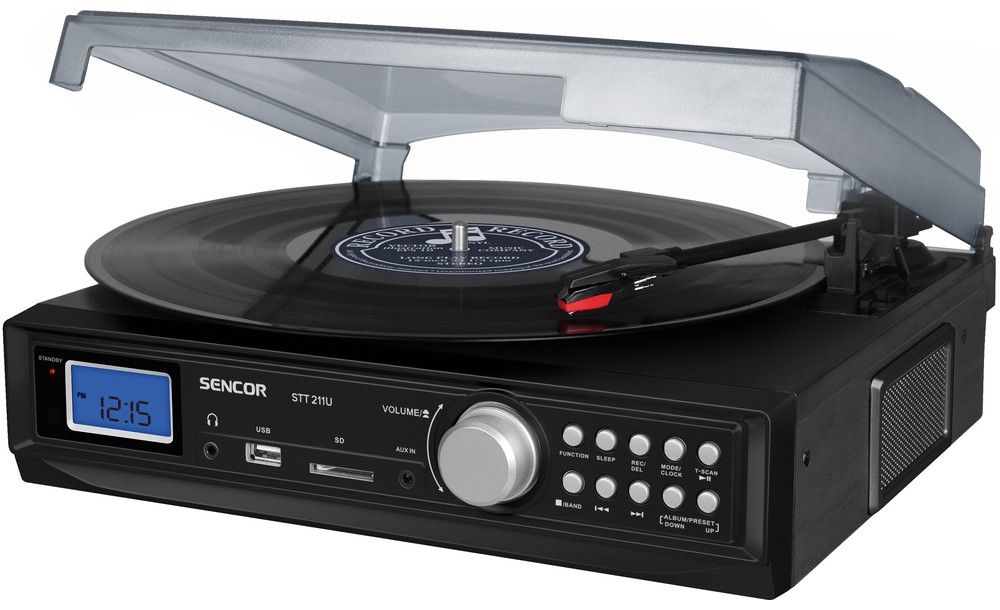 Gramofon s digitálním PLL FM/AM tunerem, USB/SD slotem a přímým nahráváním na USB/SD z LP desky, rádia nebo externího zdroje.