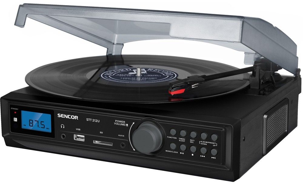 Gramofon s digitálním PLL FM/AM tunerem, USB/SD slotem a přímým nahráváním na USB/SD z LP desky, rádia nebo externího zdroje.