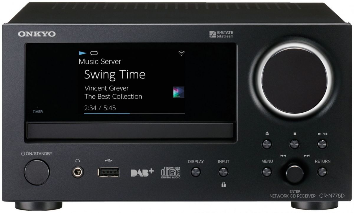 Hi-Fi CD receiver, 40W/ch/4Ω, DAB+ tuner, Bluetooth, WiFi (Chromecast, DTS Play-Fi, FlareConnect; Spotify, TIDAL, TuneIn), 2xUSB, Hi-Res Audio, digitální vstupy a Pre Out pro subwoofer.