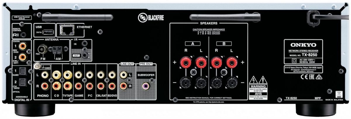 Stereo receiver 135W/ch, tuner FM/DAB+, Bluetooth, WiFi (Chromecast, DTS Play-Fi, AirPlay, FireConnect; Spotify, TIDAL, TuneIn), USB, Phono a digitální audio vstupy, Hi-Res Audio DSD 5.6, 192/24 FLAC/WAV/ALAC; DAC AKM 768kHz/32bit a Hi-Fi audio konstrukce.