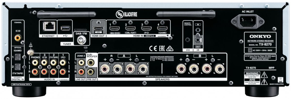 Stereo receiver 160W/ch, HDMI (4in, 1out, 4K/60Hz, HDCP2.2), tuner FM/DAB+, WiFi, Bluetooth, AirPlay, USB, Phono; síťové fce (TuneIn, Chromecast built-in, DTS Play-Fi, AirPlay, Spotify, TIDAL); Hi-Res Audio; DAC AKM 384kHz/32bit a Hi-Fi audio konstrukce.