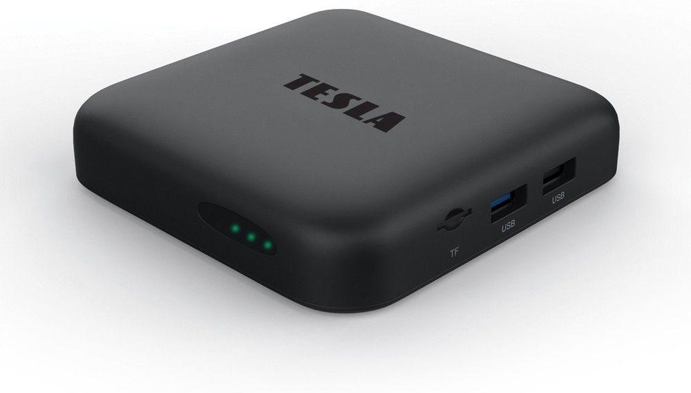Multimediální přijímač TESLA MediaBox XA400 DVB Android TV s procesorem Amlogic S905X2-B 1,8GHz, 8 GB vnitřní paměť eMMC - DualBand Wi-Fi (2,4 GHz + 5 GHz), Bluetooth 4.2, HDMI-CEC, HDR, podpora připojení USB flash disku, externího pevného disku nebo paměťové karty (microSD, max. 32 GB).