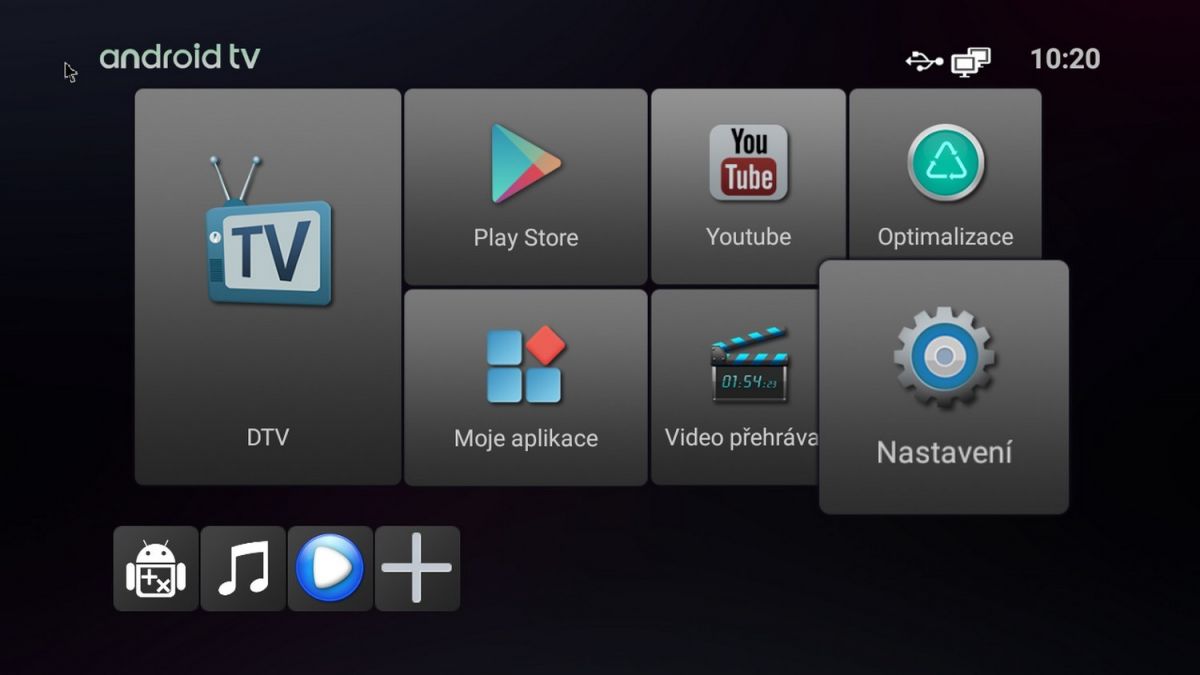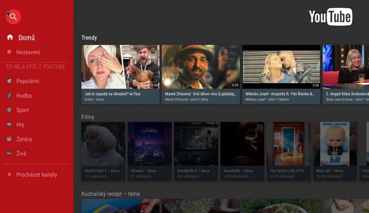 Kompletní menu systému Android je v českém jazyce. Aplikace YouTube také v češtině.