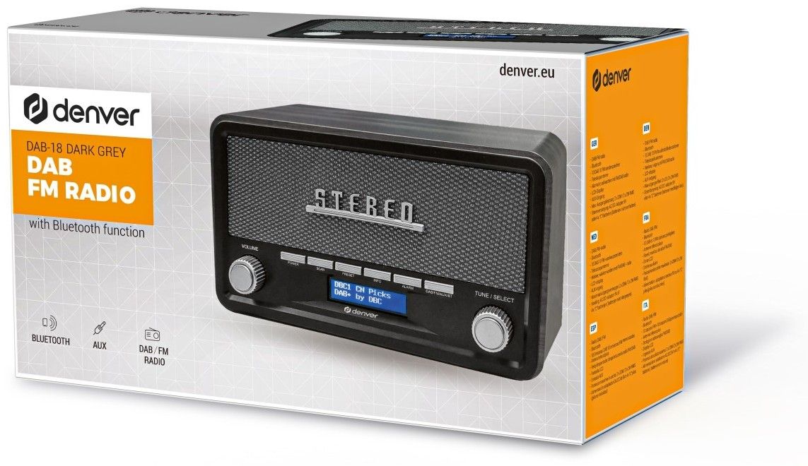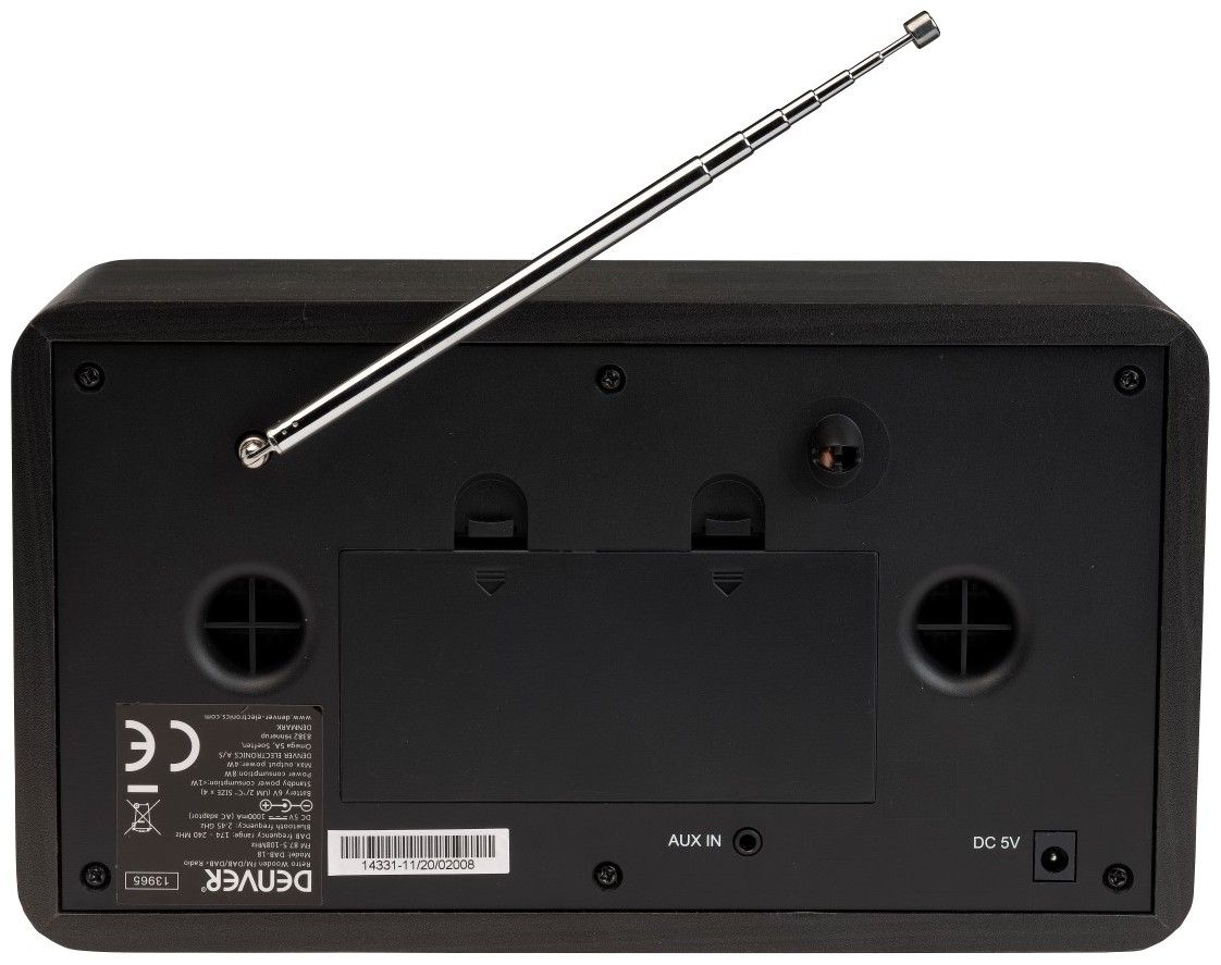 Stylové retro rádio Denver DAB-18 nenabízí jen pouhý poslech rádia v digitální kvalitě. Snadno jej připojíte ke svému MP3 přehrávači, telefonu nebo tabletu. Přehrávat můžete bezdrátově Bluetooth, nebo se připojit kabelem do vstupu AUX. Stačí zapojit do sítě 230V a užívat si poslechu doma, nebo využít možnosti provozu na baterie a poslouchat kdekoliv.