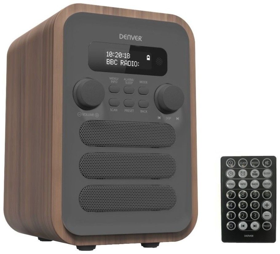 Radiopřijímač s DAB+/FM tunerem, Bluetooth, pamětí až na 40 + 40 stanic, budíkem, 2 časy buzení - rádiem/tónem a dálkovým ovládáním.