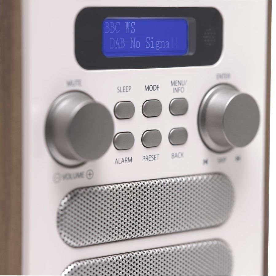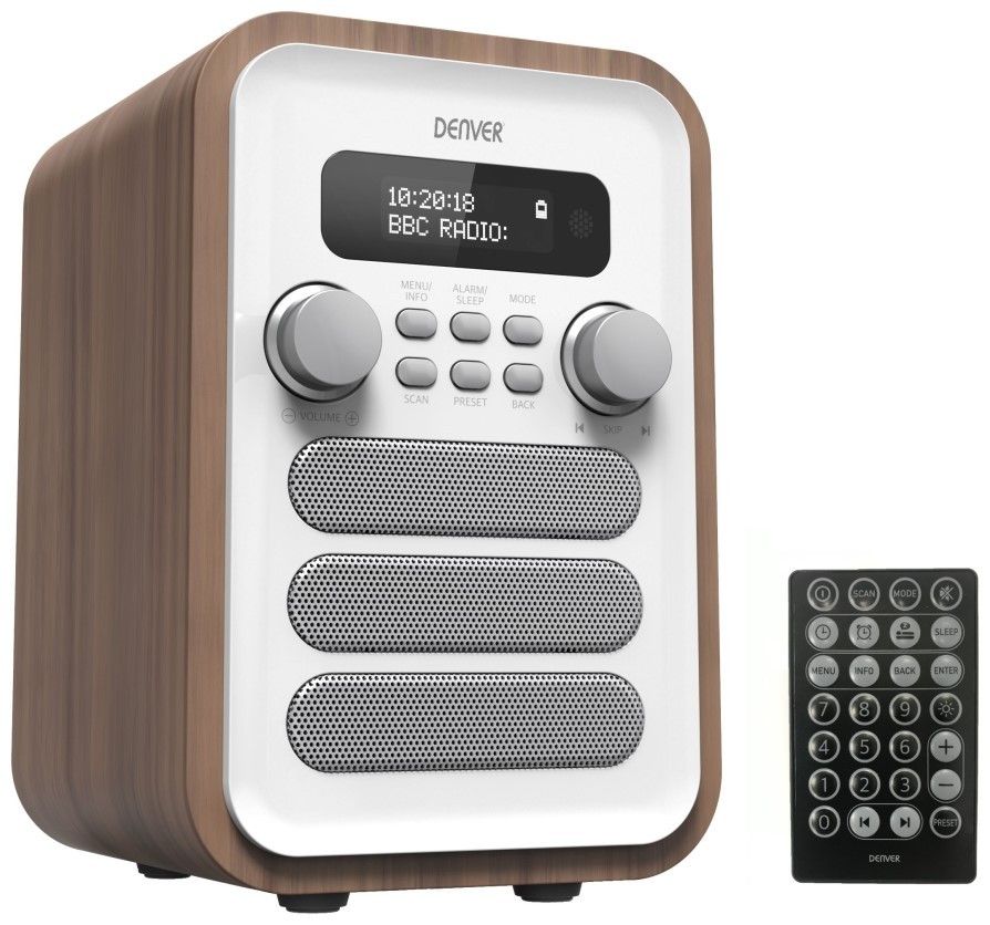 Radiopřijímač s DAB+/FM tunerem, Bluetooth, pamětí až na 40 + 40 stanic, budíkem, 2 časy buzení - rádiem/tónem a dálkovým ovládáním.