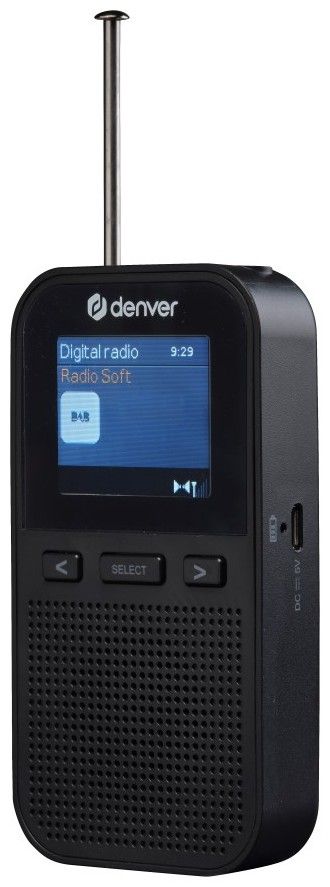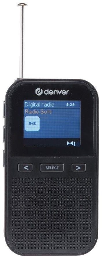 Kapesní DAB+/FM rádio má 1,8" barevný displej s podsvícením, dobíjecí baterie až na 8 hodin přehrávání, budík a výstup pro sluchátka.