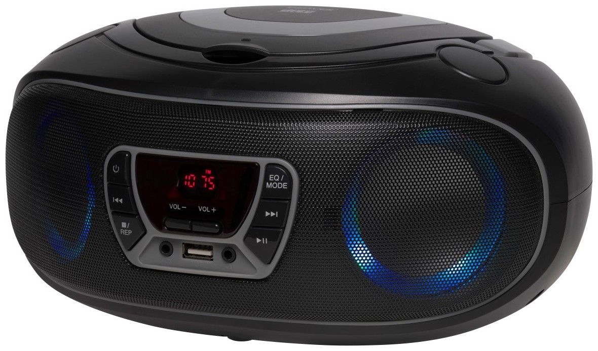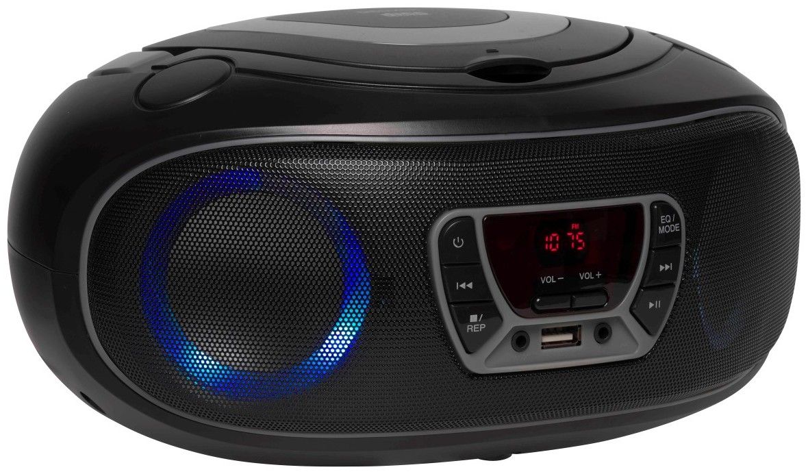 Boombox s Bluetooth a FM rádiem, pamětí na 30 stanic, LCD displejem, USB vstupem a výkonem 2 x 2W.
