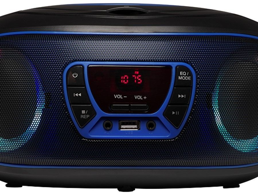 Boombox s Bluetooth a FM rádiem, pamětí na 30 stanic, LCD displejem, USB vstupem a výkonem 2 x 2W.