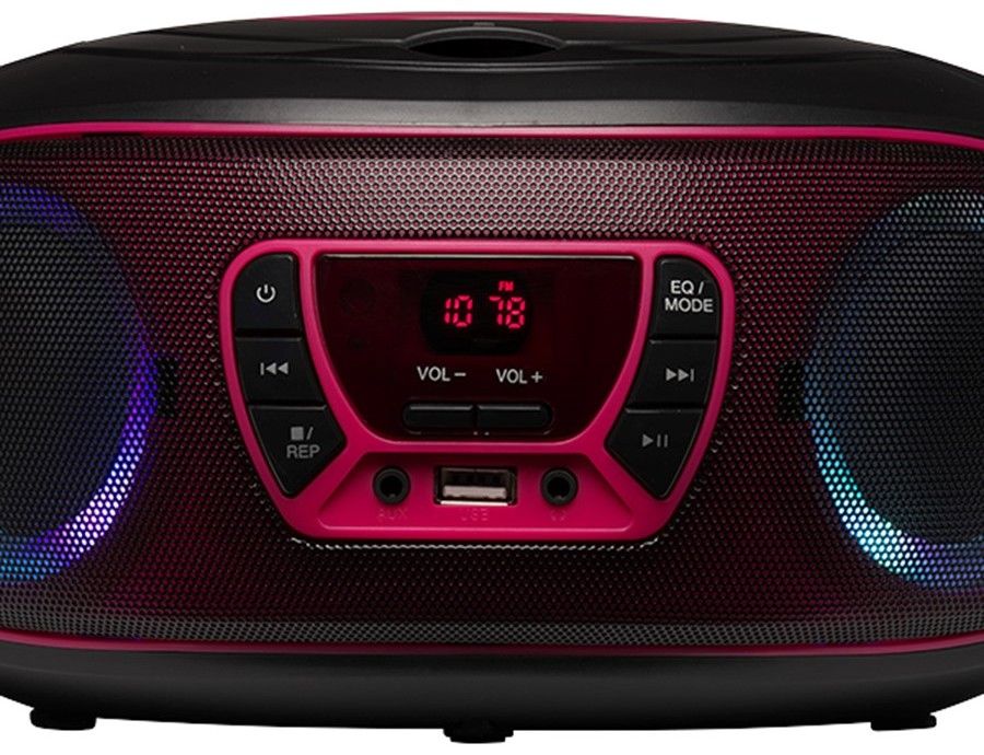 Boombox s Bluetooth a FM rádiem, pamětí na 30 stanic, LCD displejem, USB vstupem a výkonem 2 x 2W.
